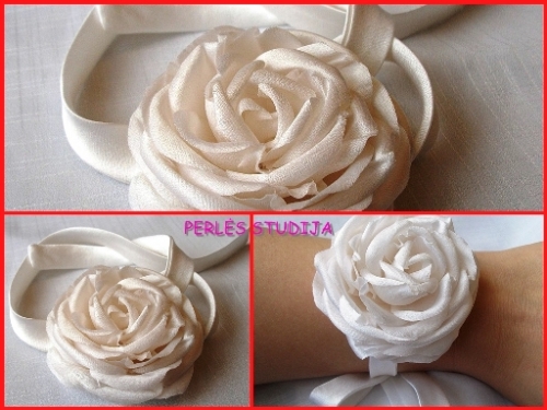 Puošnios gėlės iš organzos ir šifono, puokštės nuotakoms, pagalvėlės žiedams, keliaraiščiai, dekoruoti šampano buteliai ir taurės... tai mielos smulkmenos, kurios papuoš Jūsų šventę.