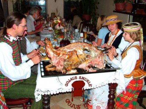 Taigi pasisvečiuokite "Gojaus Smuklėje", pasigardžiuokite čia pagamintais valgiais. Siūlome jų ir labiau paplitusių, ir atkeliavusių iš žilos senovės, papasakotų senelių ir prosenelių, dar visai neragautų.