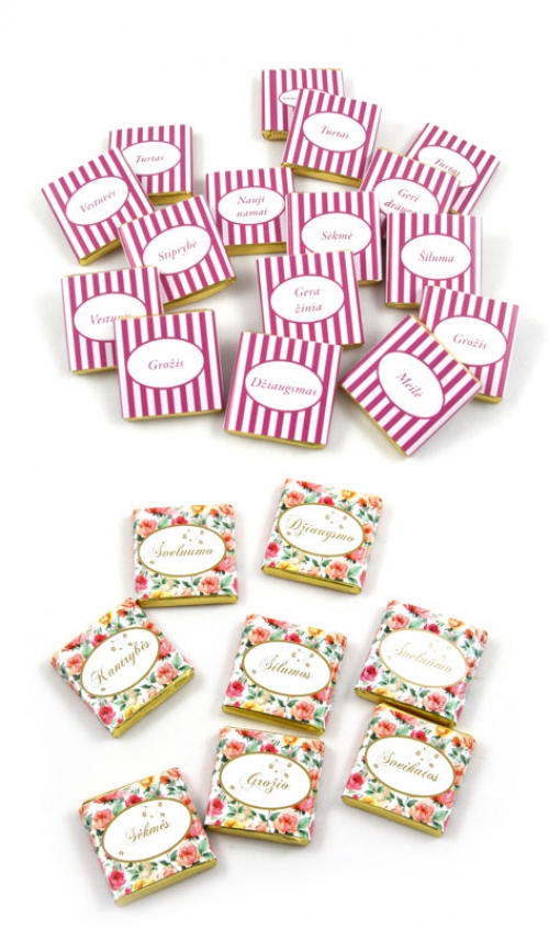 Vardiniai saldainiai vėstuvėms.