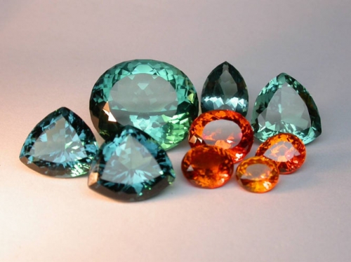 Nuotraukose pateikiame centrinių akmenų variantus - akvamarinus, ametistus, kvarcus, topazus, turmalinus, citrinus, uginius opalus ir, be abejo, deimantus.