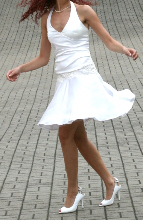 Parduodu savo pačios kurtą trumpą vestuvinę suknelę, todėl antros tokios tikrai niekur nebus, 36 (S) dydžio, tačiau galima koreguoti - didinti, mažinti. Didžioji dalis suknelės padaryta iš šilko. Labai patogi, lengva ir laisva, ypač vasarą. Galiu parduoti ir batelius (38 dydis). Tiek suknelė, tiek bateliai nešioti vieną kartą, net ne visą dieną, o tik puse, todėl tikrai nesusidėvėję. Suknelės kaina - 700 Lt. Su bateliais - 800 Lt.