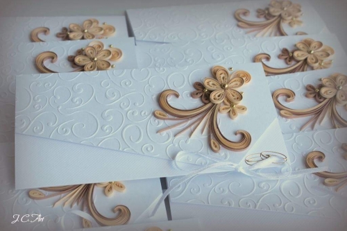 Siūlau išskirtinius, rankų darbo vestuvinius kvietimus. Kiekvienas užsakymas aptariamas individualiai. Galimas spalvų, reljefo ir elementų keitimas. Dirbu su aukštos kokybės perlamutriniu kartonu. Darau kvietimus ir atvirukus iš reljefinio kartono. Pagal užsakymą darau stalo korteles bei dovanų dežutes
