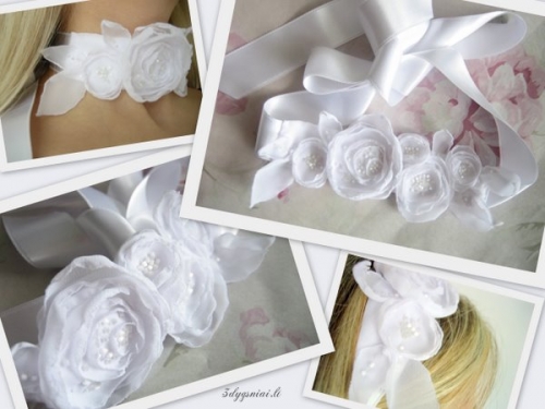 Rankų darbo vestuviniai papuošalai: nuotakoms bei pamergėms.