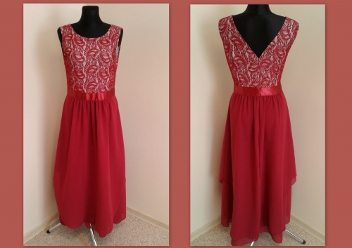 Raudona trumpa-ilga gipiūro suknelė L dydžio