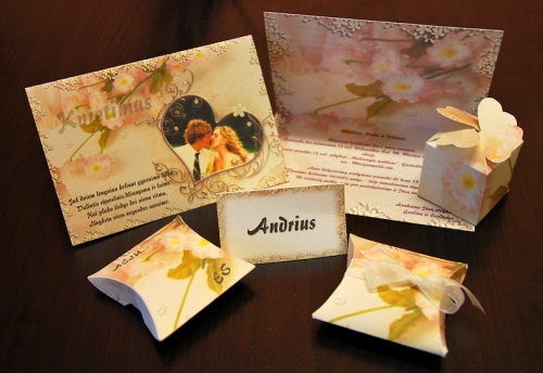 Vestuviniai kvietimai, stalo kortelės, padėkos dėžutės, foto knyg